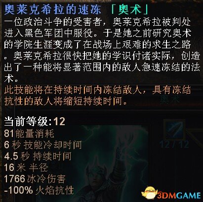 首先,本次测试的技能为奥莱克希拉的速冻,可以看到,基础伤害为1766点。